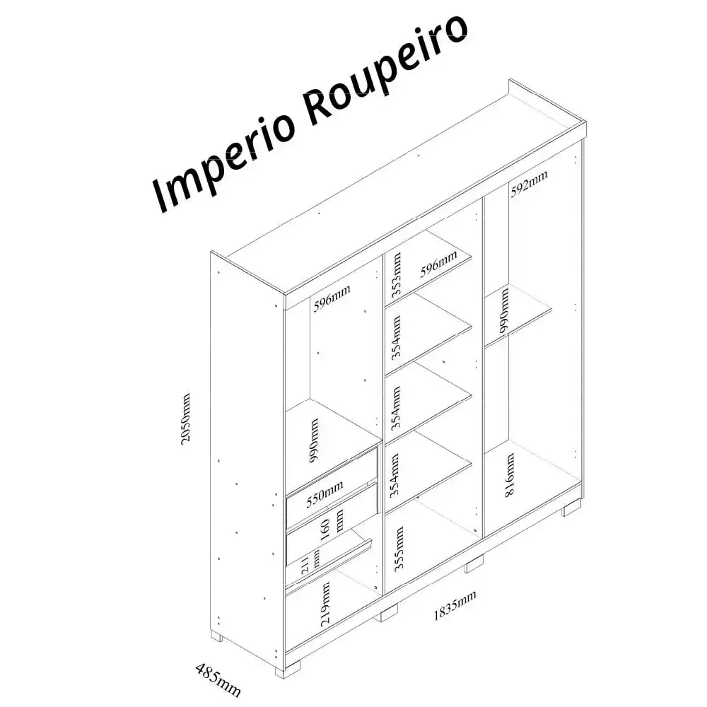 Um roupeiro elegante e imponente. Com duas gavetas de corrediças telescópicas, ampla quantidade de prateleiras e sapateira inclinada é ideal para facilitar sua rotina e otimizar espaços. Possui puxadores em MDF com cava que exaltam sua beleza e trazem um toque de modernidade.